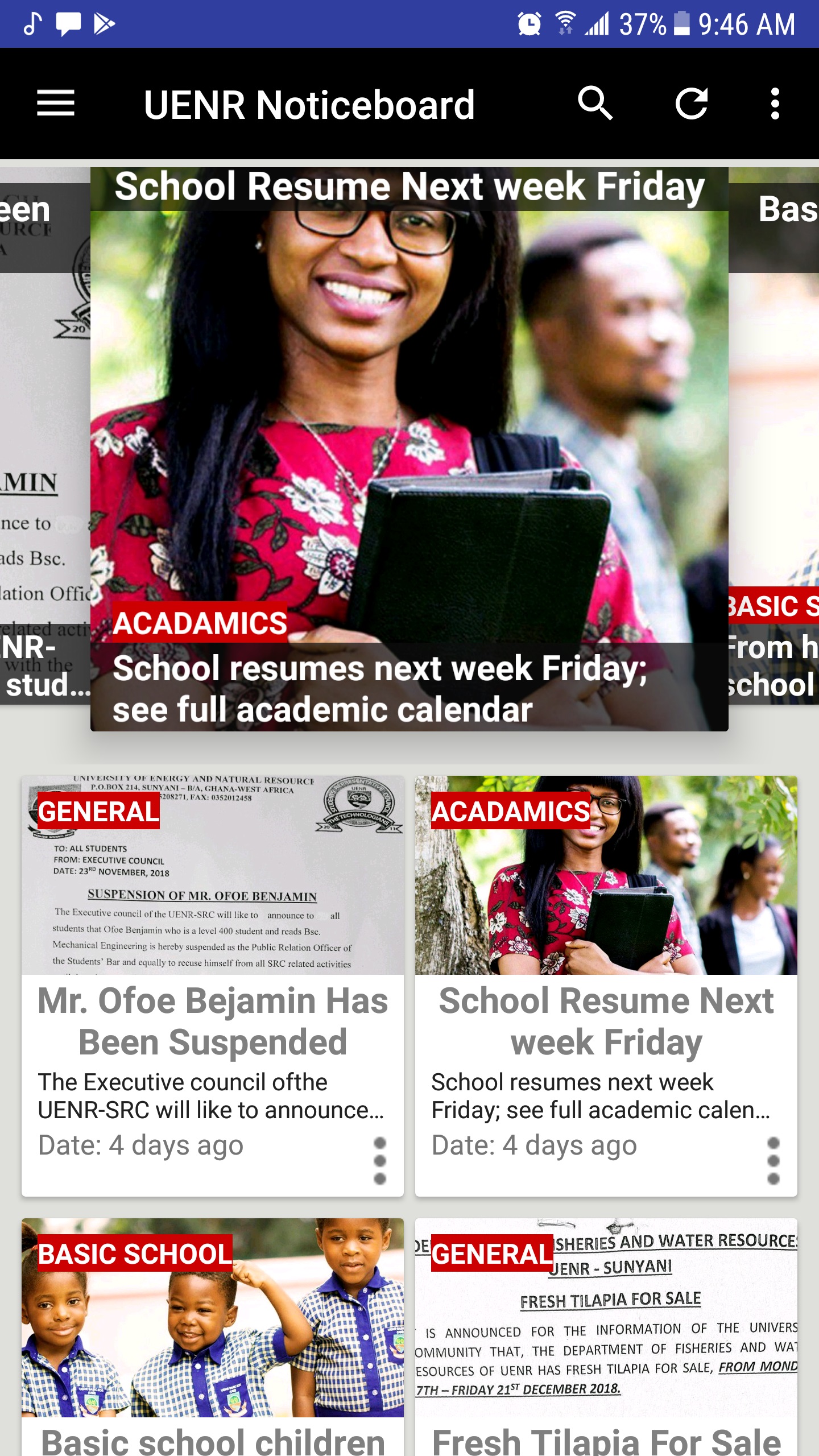 it provides an updated news on the notice board and also news from the school website